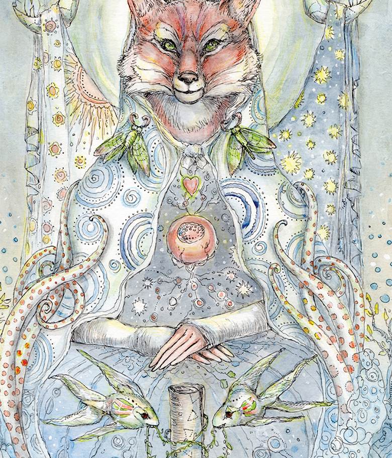 From Paulina Fae (aka Paulina Cassidy) Phantasma Tarot draws you into the colorful world of daydreams and magical visions, where kindred spirits guide you on an exciting journey through the 78 cards of tarot. You will learn a great deal about yourself from these mentors and mystical creatures. The 76-page guidebook shares their messages and life lessons, as well as instructions for two Phantasma Tarot spreads. What Customers Are Saying About Phantasma Tarot Paulina (Cassidy) Fae’s intensely feathery style remains distinctive in an increasingly crowded (and imitative) illustrative field. Perhaps it’s the intricacy of her lacy pen work, or maybe it’s the subtle coloring that lift’s her ink drawings off the page, or is it the spirit beings she communicates for, that make her artwork difficult to replicate. Whatever it is, you can always tell a Paulina when you see it. Based on the traditional Rider-Waite-Smith format, this deck provides a familiar foundation for those who rely on that comfortable starting point. From there, the deck takes off and offers readers a series of portals through which they may enter a magical world of fantasy, faith, and universal connection. This deck is a treat on so many levels. It will prove useful to readers of all levels of expertise and interest. —Anna Jedrziewski, TarotWise.com Specs Size Box measures 3.375" x 5.438"; Cards measure 3" x 5" Language EN Artist Paulina Fae